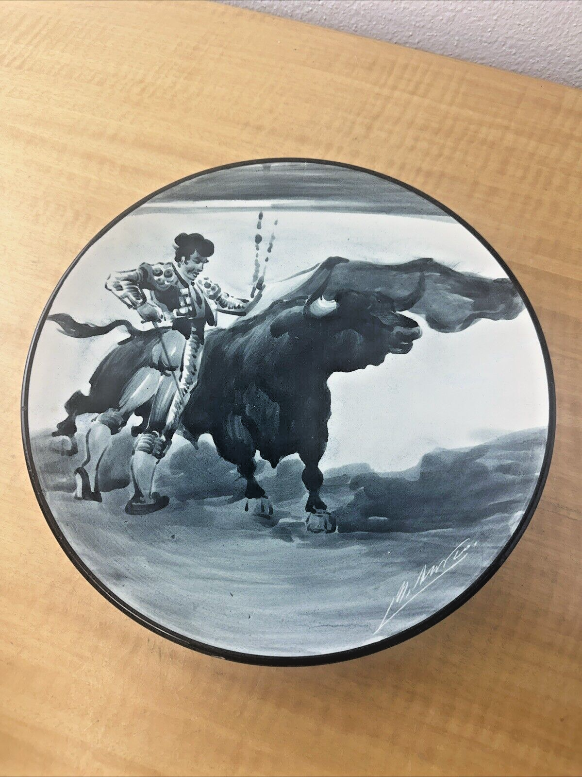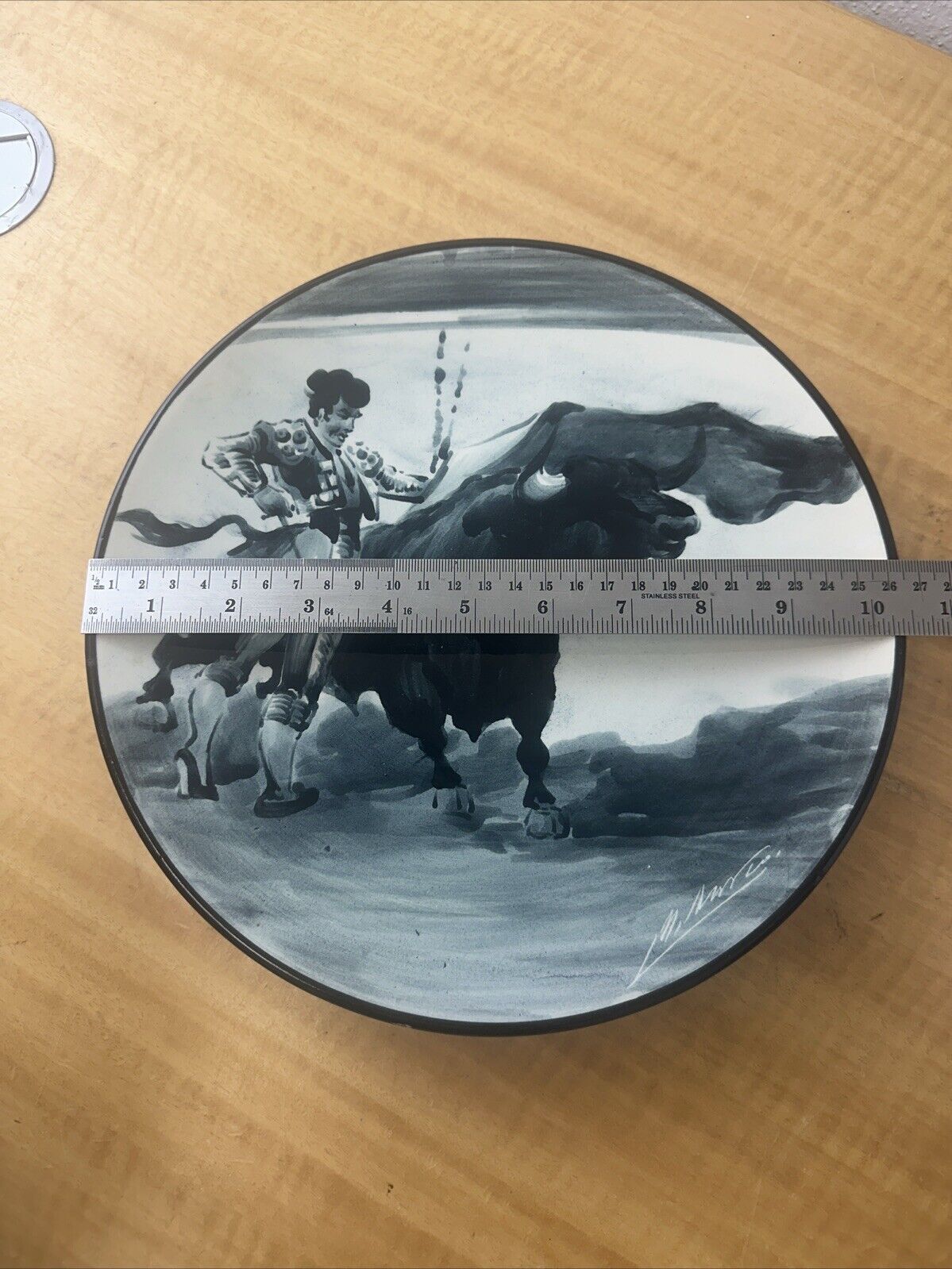 Bullfighter Fighting Bull Hand Painted in Spain Charger Rim Chips
