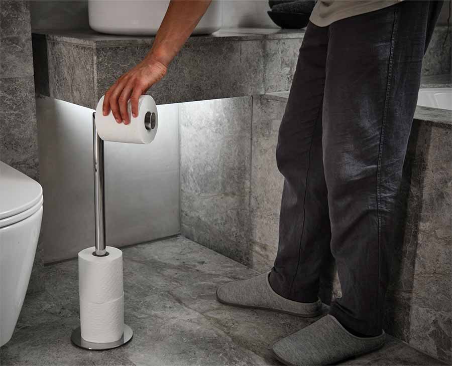 This stainless-steel toilet roll holder optimises organisation in your bathroom. Holding up to four rolls, this clever storage solution also acts as a dispenser – just rotate the roll bar to store more rolls when needed.
