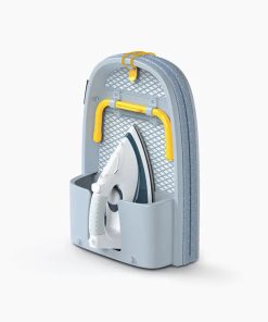 This revolutionary, full-size ironing board features a unique stand design that makes it more compact when stored than other conventional ironing boards.