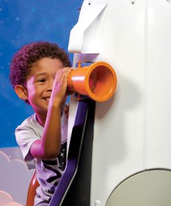 Children can travel through space, the stars and the planets with this realistic role play rocket ship. There are tons of activities that make exploring the universe fun. Kids can pilot the starship, look through the telescope, fix wires on the exterior maintenance panel or crawl through the escape hatch. And the swivel chair and star viewer screen make it feel like you’re flying through the galaxy, so make a wish and let your dreams soar.