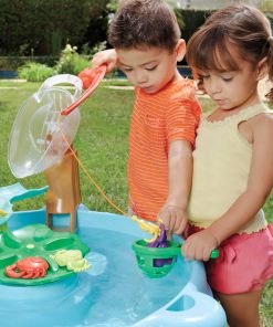The toy water table allows for many activities such as collecting and counting fish and launching critters onto the lily pad. It holds up to 7 gallons of water. One child can enjoy this table alone or get some friends involved in the fun.