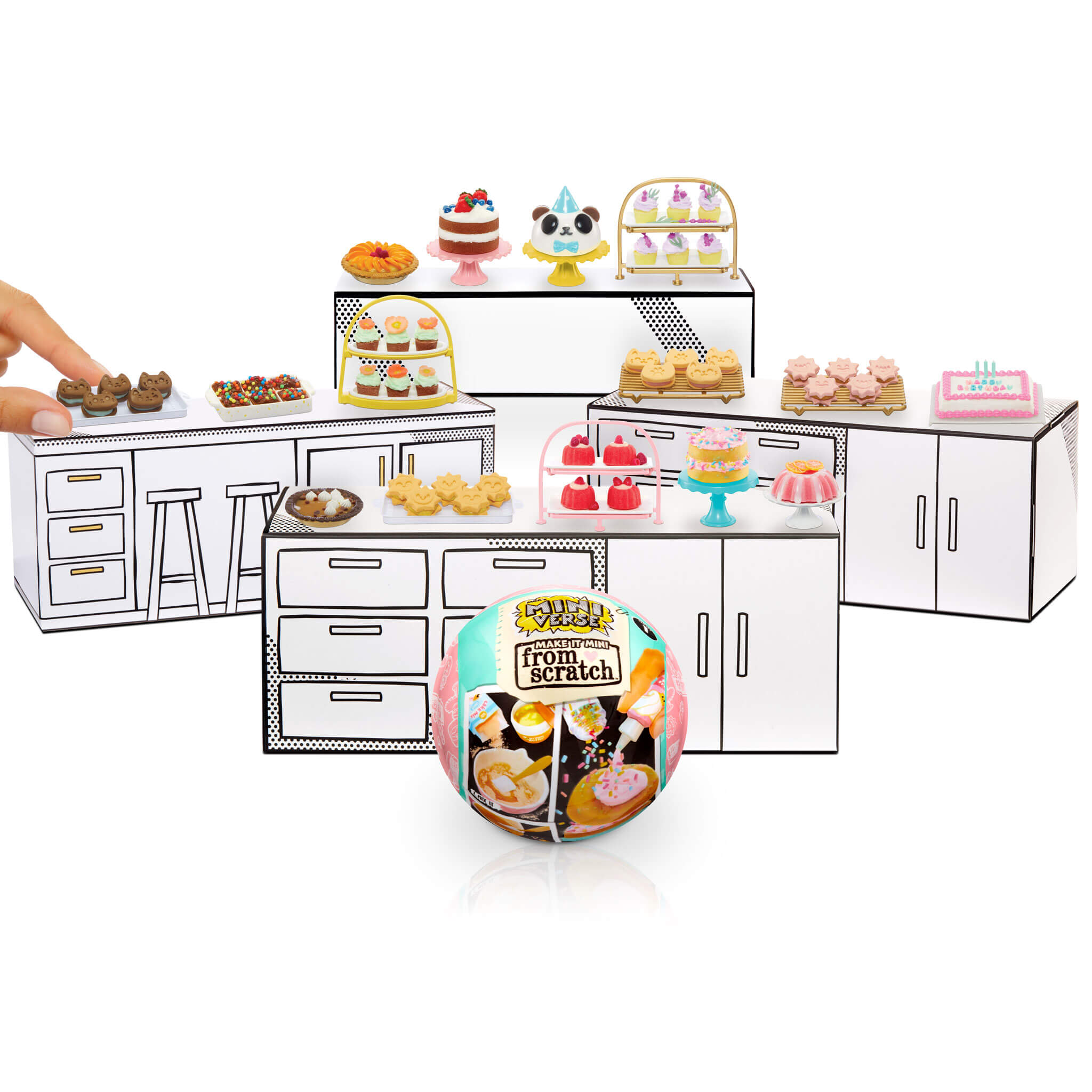 Each ball comes with realistic mini “ingredients” and accessories to make your own mini replicas of your favorite pastries and desserts “from scratch”! Each package is a SURPRISE, so you won’t know which mini you have until you unbox it! Make it Mini from Scratch brings the fun of baking into the play process! Use “raw ingredients” to mix, layer, and build your sweet mini treat. Compare your ingredients with the included collector’s guide to see which mini you’ve received and follow the “recipe” card on the back to make your creation.