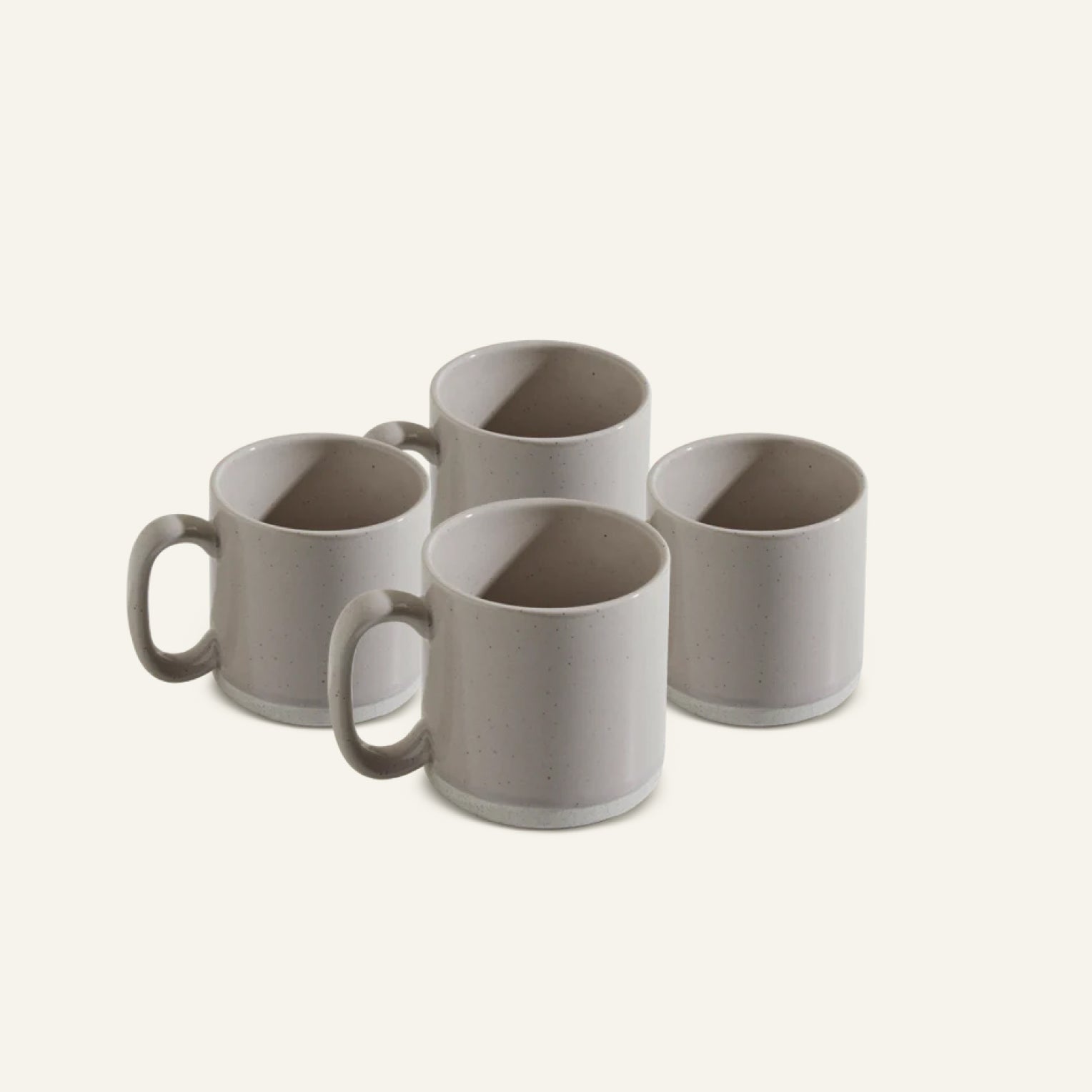 Our very limited-edition, handmade porcelain mugs (in three signature colours) are just-the-right size for big pours of morning coffee or afternoon chai or even generous scoops of ice cream. And they come in a set of four so you can easily share with your nearest and dearest.