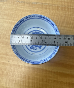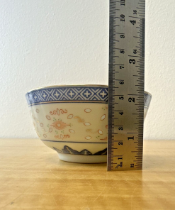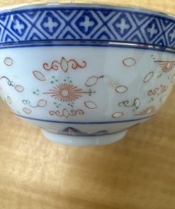 Vintage Chinese Rice Bowl Rice Pattern Grain Blue/White/Orange