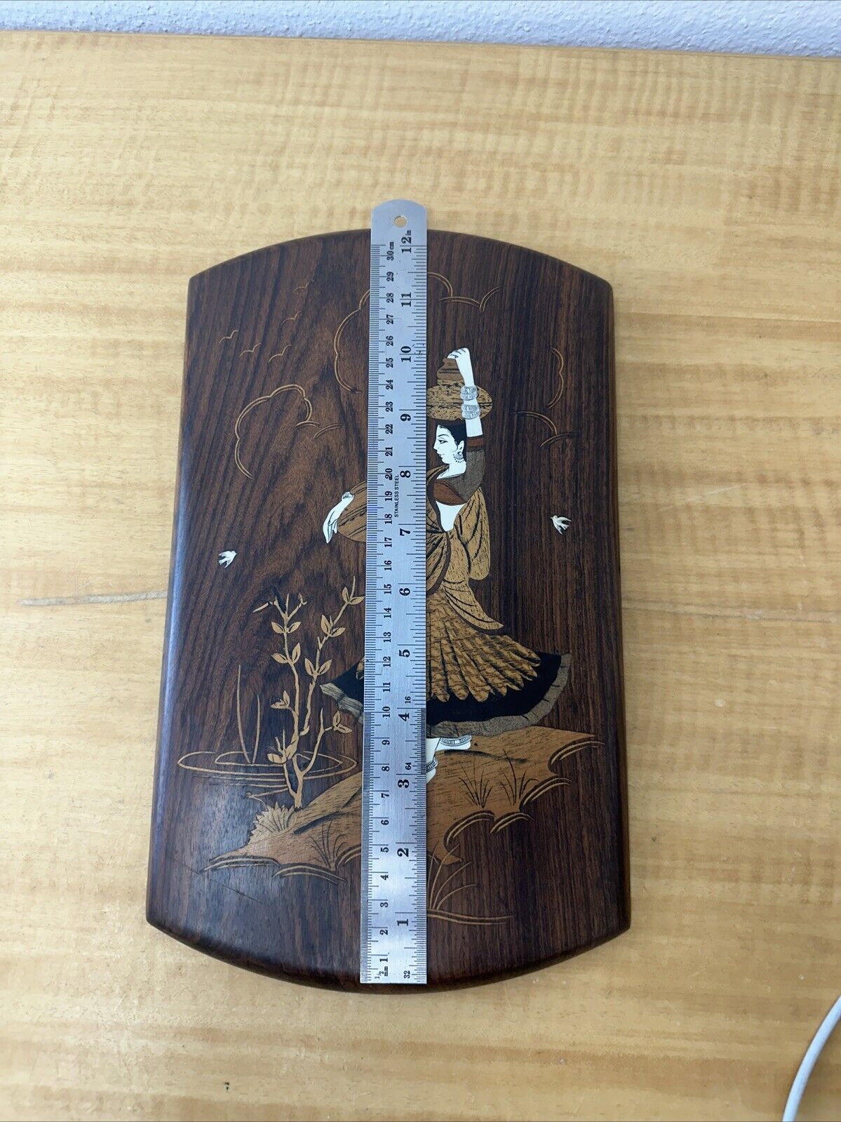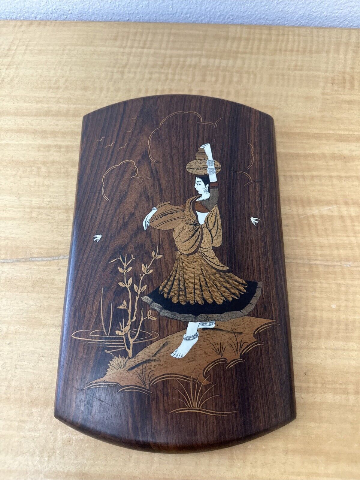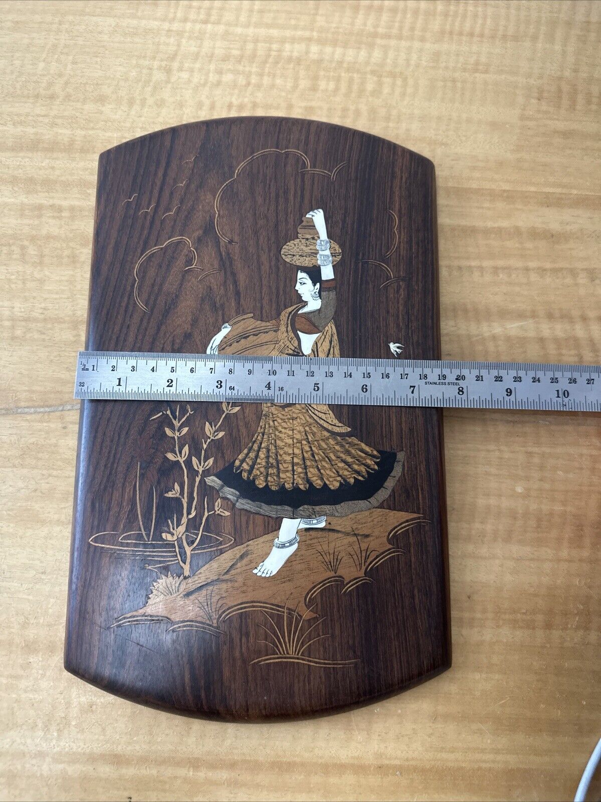 Vintage Indian Inlaid Wood Handmade Handcarved Plaques Women