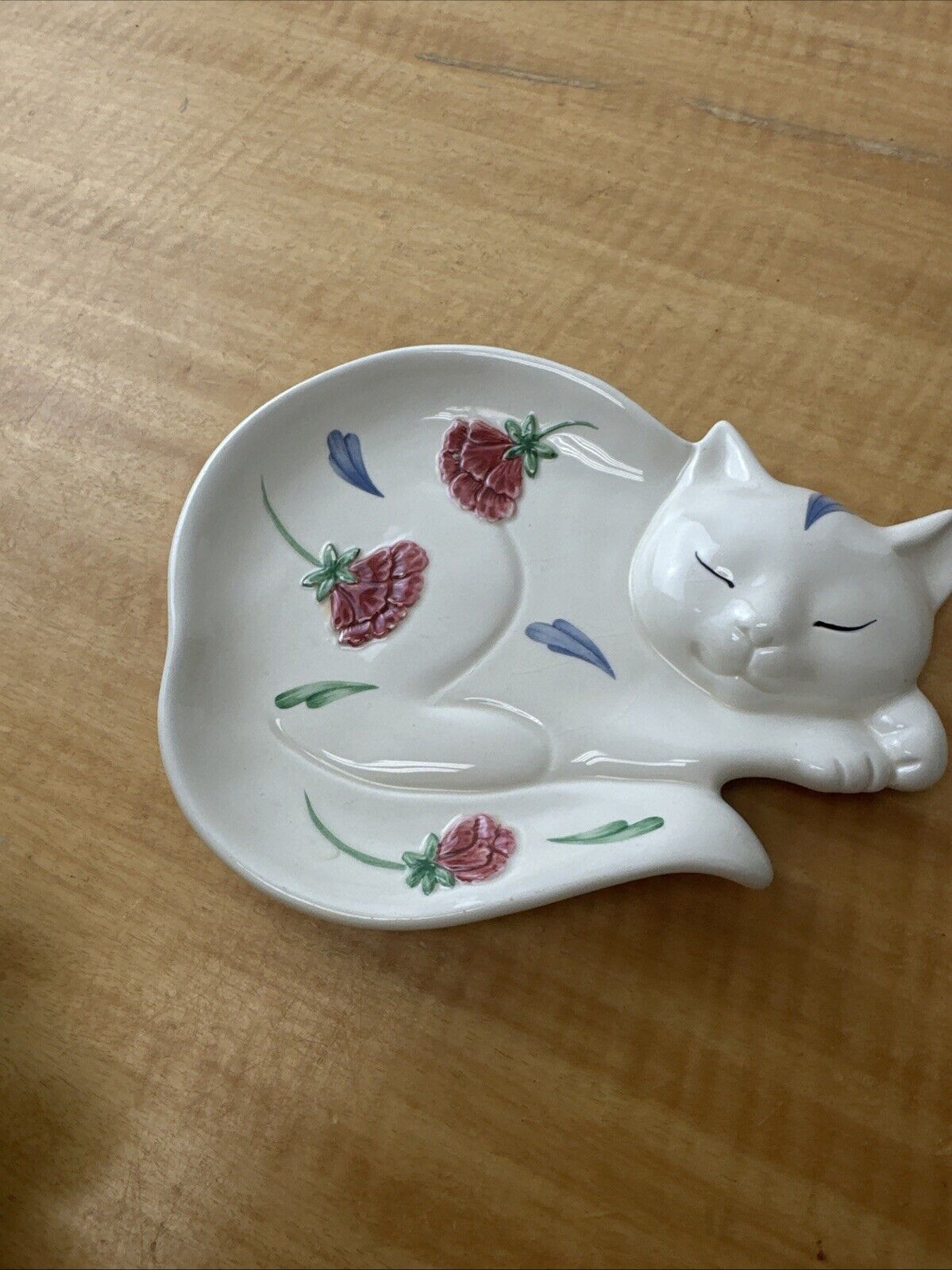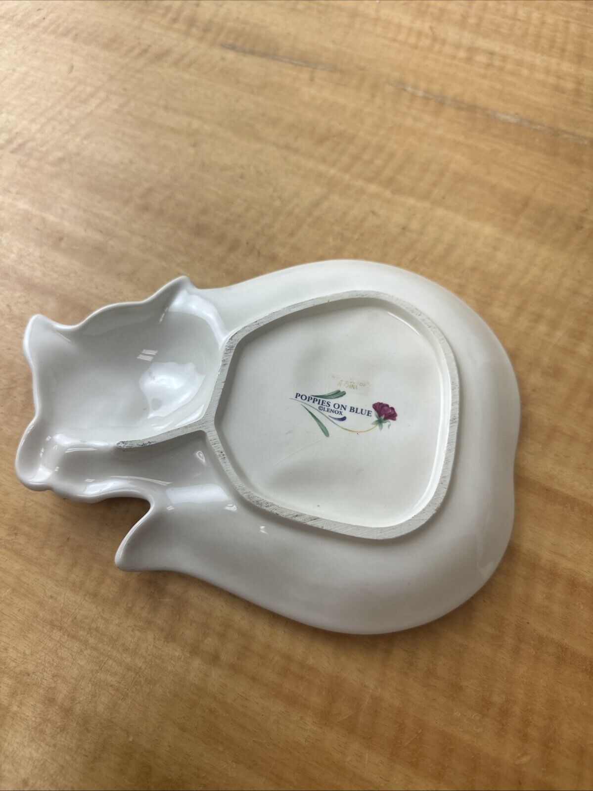 Vintage Lenox Poppies on Blue Barnyard Cat Kitten Plate Spoon Rest Flower Design