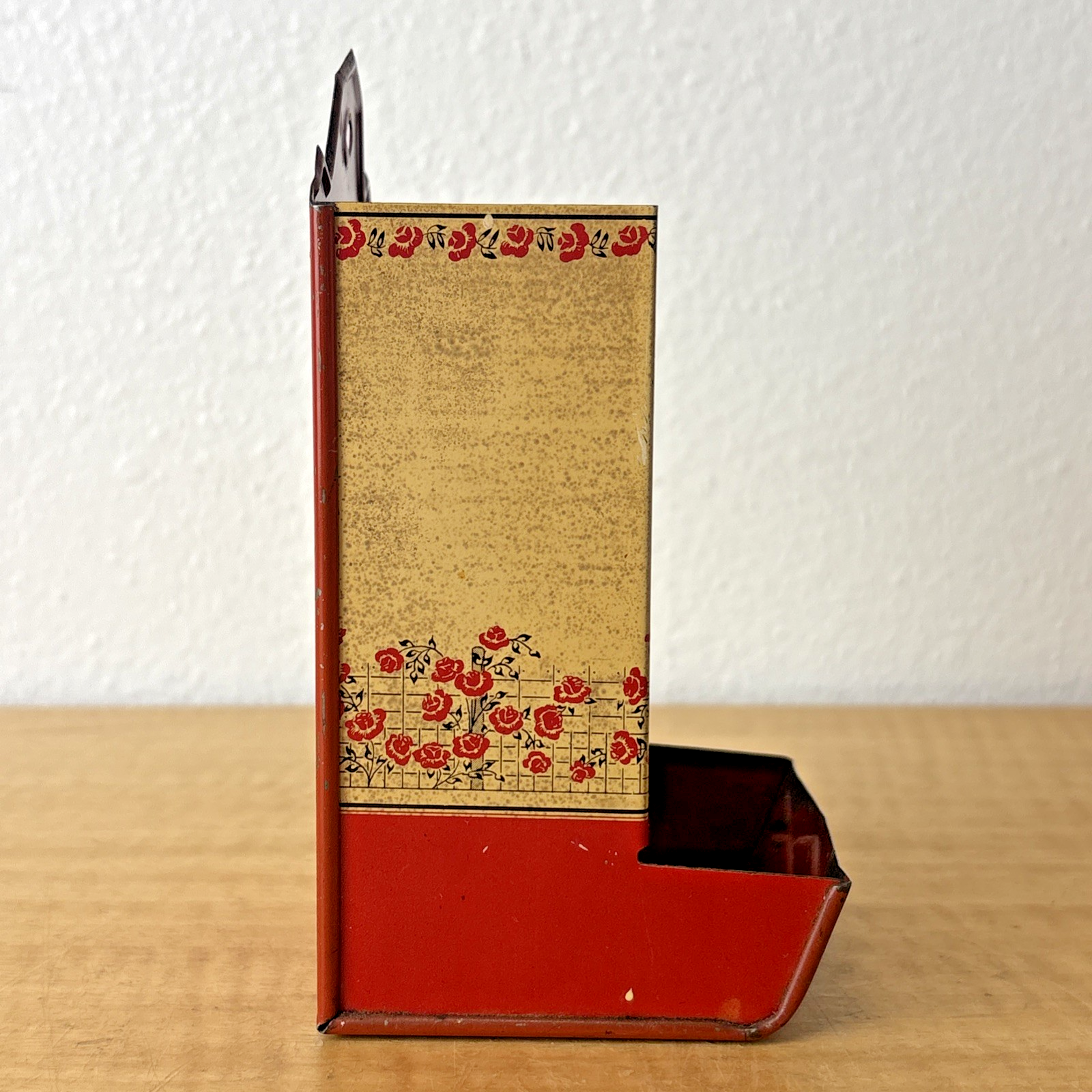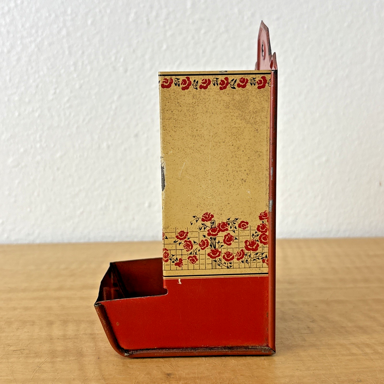 VINTAGE METAL WALL MOUNT MATCH BOX HOLDER Lady in Rose Garden