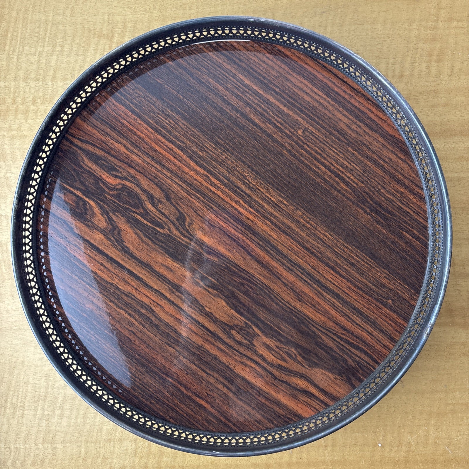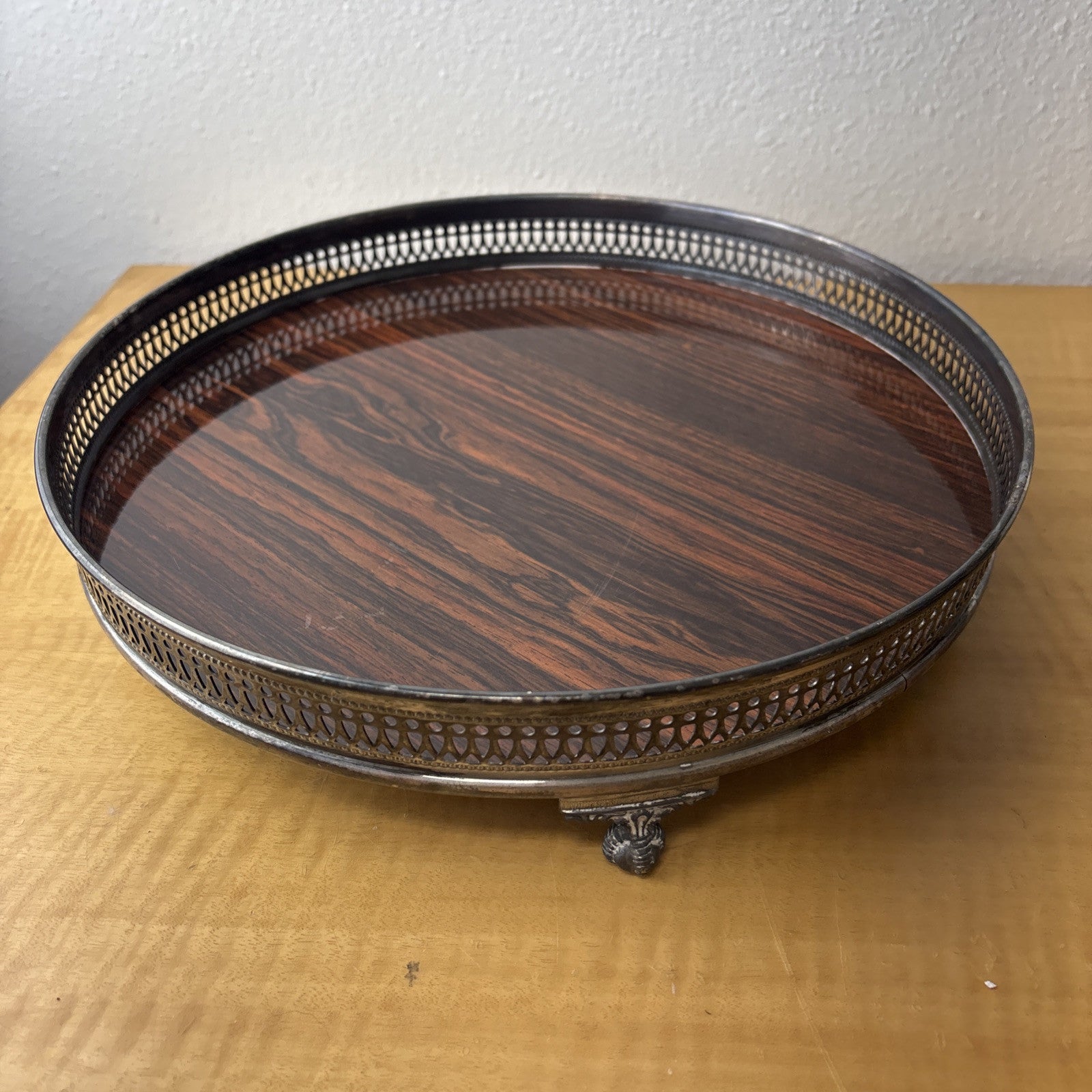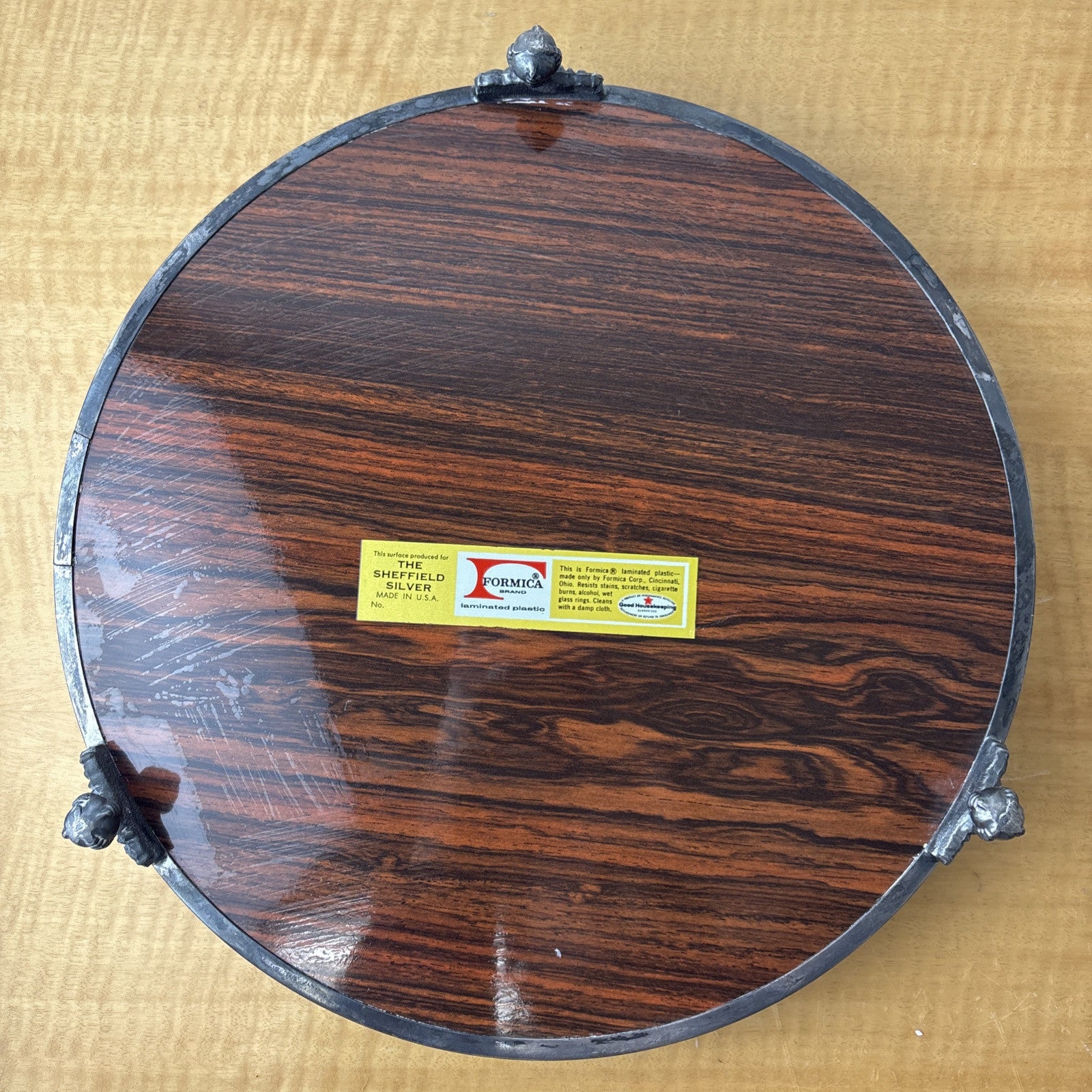 Vintage Sheffield Silver Co Tray Formica Laminate w/ Ornate Silver Plate Rim