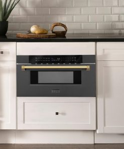 ZLINE Autograph Edition 24 in. 1.2 cu. ft. Built-in Microwave Drawer in Black Stainless Steel with Champagne Bronze Accents (MWDZ-1-BS-H-CB)