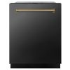 ZLINE Autograph Edition 24 in. Monument Series 3rd Rack Top Touch Control Tall Tub Dishwasher in Black Stainless Steel with Polished Gold Handle, 45dBa (DWMTZ-BS-24-G)