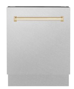 ZLINE Autograph Edition 24 in. 3rd Rack Top Control Tall Tub Dishwasher in Stainless Steel with Polished Gold Handle, 51dBa (DWVZ-304-24-G)