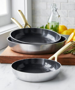 GP5 Stainless Steel 8″, 10″ and 12″ Frypan Set | Champagne Handles