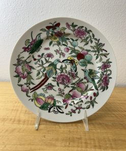 Early 1900s French Jade Green Frosted Glass Cup Tropical Hibiscus