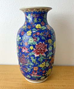 Porcelain Orb Ball Sphere Fine Porcelain Cobalt Blue w/ Flowers