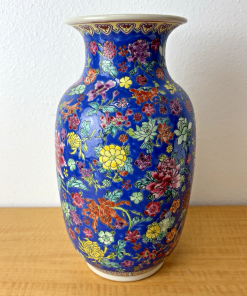 Porcelain Orb Ball Sphere Fine Porcelain Cobalt Blue w/ Flowers