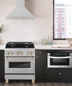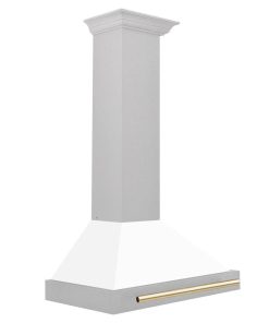 ZLINE Autograph Edition Convertible Fingerprint Resistant DuraSnow Stainless Steel Range Hood with Polished Gold Handle (KB4SNZ-G)