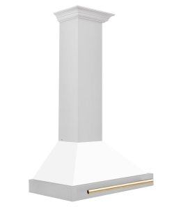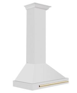 ZLINE Autograph Edition Convertible Stainless Steel Range Hood with White Matte Shell and Polished Gold Accents (KB4STZ-WM-G)