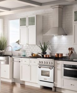 ZLINE 30 in. 4.0 cu. ft. Legacy Dual Fuel Range with 4 Burner Gas Cooktop and Electric Convection Oven in DuraSnow Stainless Steel and White Matte Door (RAS-WM-30)