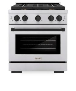 ZLINE Autograph Edition 30 in. 4.2 cu. ft. Paramount Gas Range with 4 Burner Cooktop and Convection Gas Oven in Stainless Steel and Matte Black Accents (SGRZ-30-MB)