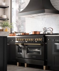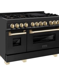 ZLINE Autograph Edition 48 in. 6.0 cu. ft. Legacy Dual Fuel Range with 7 Burner Gas Cooktop and 2 Electric Ovens in Black Stainless Steel and Polished Gold Accents (RABZ-48-G)