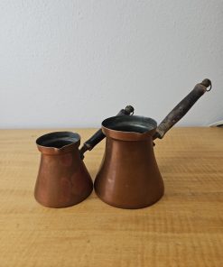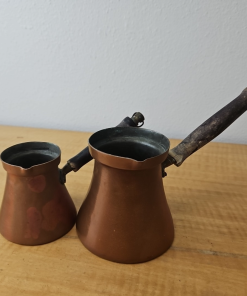 Set of 2 Copper Turkish Coffee Maker Pot – spout and wood handle with hang ring