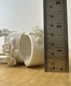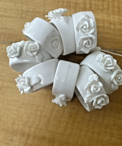 Set of 8 White Porcelain Napkin Rings Carved Roses Baby Shower Wedding Vintage