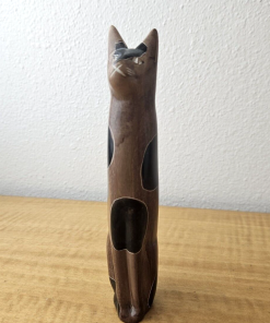 Spotted Cat hand carved in Kenya 7″ figurine, decor beautiful, heavy- 1 pound