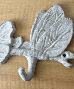 Vintage Wall Hanging Hooks Butterfly 15″ Long Charcoal Gray Dragonfly Cast Iron