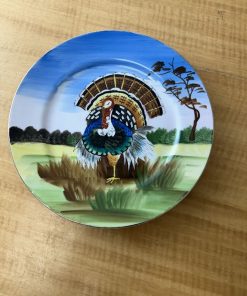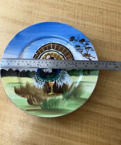 Vintage Wood Farmhouse Round 13″ Tidbit Tray with Center Pig Handle Folk Art