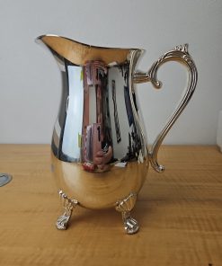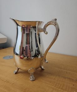 Footed Water Pitcher with ice lip – made in Hong Kong, (maybe by Regal Silver)
