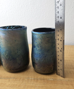 Iridescent Art Glass Tumbler Set of 3 Drinkware Blue Multicolor unique
