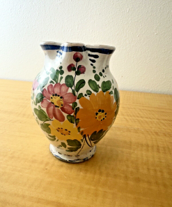 Italian Floral Vase – Vintage Folk Art Hand Painted Flower Pottery Pitcher