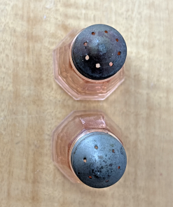 JEANNETTE GLASS CO. DORIC PINK PAIR SALT & PEPPER SHAKERS!