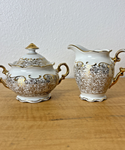 Antique PMB House of Dresden Gold Filigree Sugar Bowl and Creamer Set