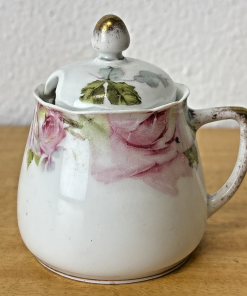Antique Silesia Alice Porcelain Sugar Bowl / Jam Jar Pink Floral Design