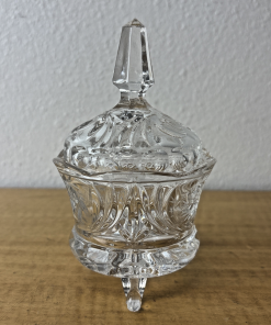 Vintage Decorative Crystal 3 – Legged Lidded Cut Glass Candy Dish