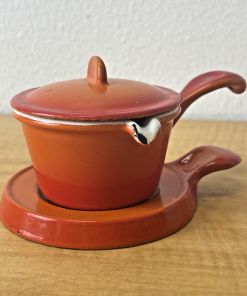 Vintage Descoware Belgium Flame Orange Enamel Cast Iron Butter Warmer Ramekin