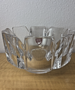 Vintage Orrefors Sweden 7 1/5″ Round Glass Crystal Corona Bowl ~Lars Hellsten