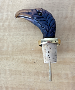 Vintage Regal Eagle Bird Bottle Stopper Carved Wood or Resin Glass Eye