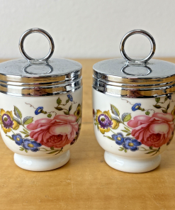 Vintage Royal Worcester Bone China Rose Pattern Egg Coddlers Set of 2