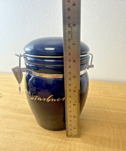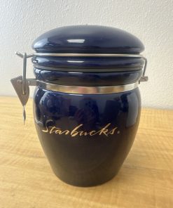 Vintage Starbucks Blue Coffee Canister Cookie Jar 7″H Silver Script Z7.1