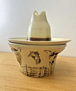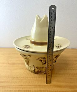 Vtg 1960s McCoy Western Hat BBQ Lidded Chips & Dip Bowl/Cookie Jar
