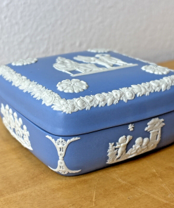 Wedgwood Miniature Queen’s Ware Blue on White Embossed Pitcher