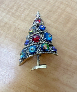 Weiss Sugarplum Rivoli Rhinestones Christmas Tree Brooch RARE 1964
