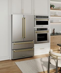 ZLINE Autograph Edition 30 in. Professional True Convection Single Wall Oven with Air Fry and Self Clean in DuraSnow Stainless Steel with White Matte Door and Champagne Bronze Handle (WASSZ-WM-30-CB)