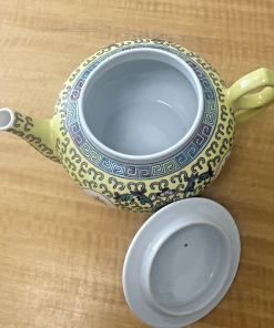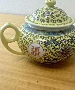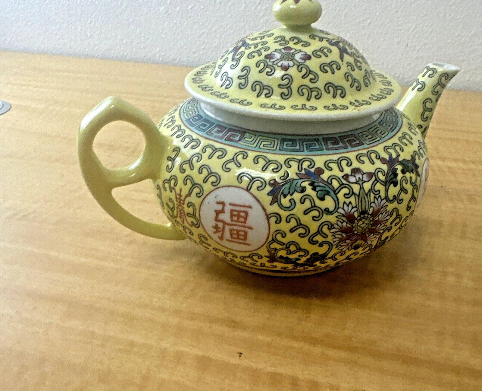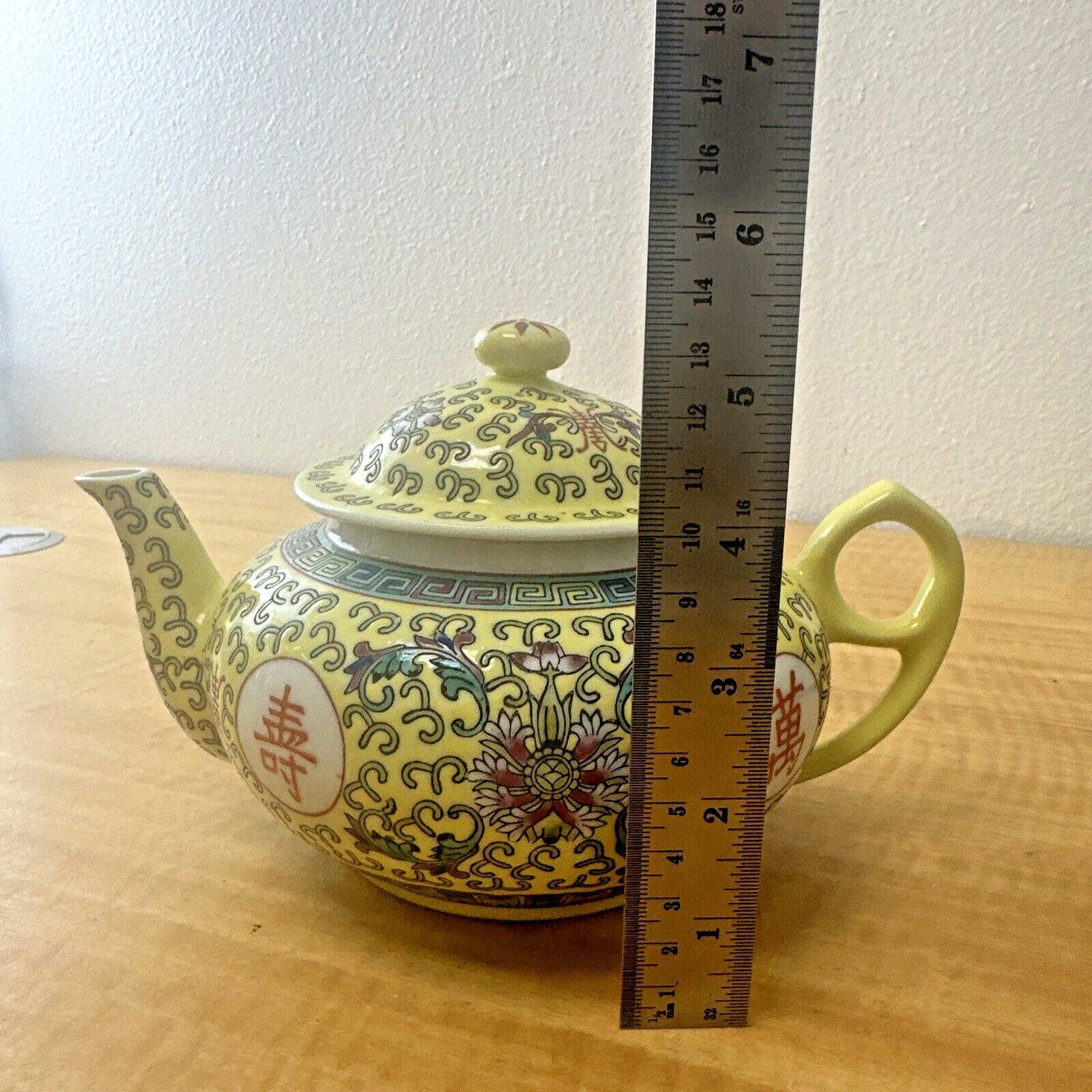 18th Century Style Yellow Porcelain Chinese Teapot Mun Shou Longevity Pattern