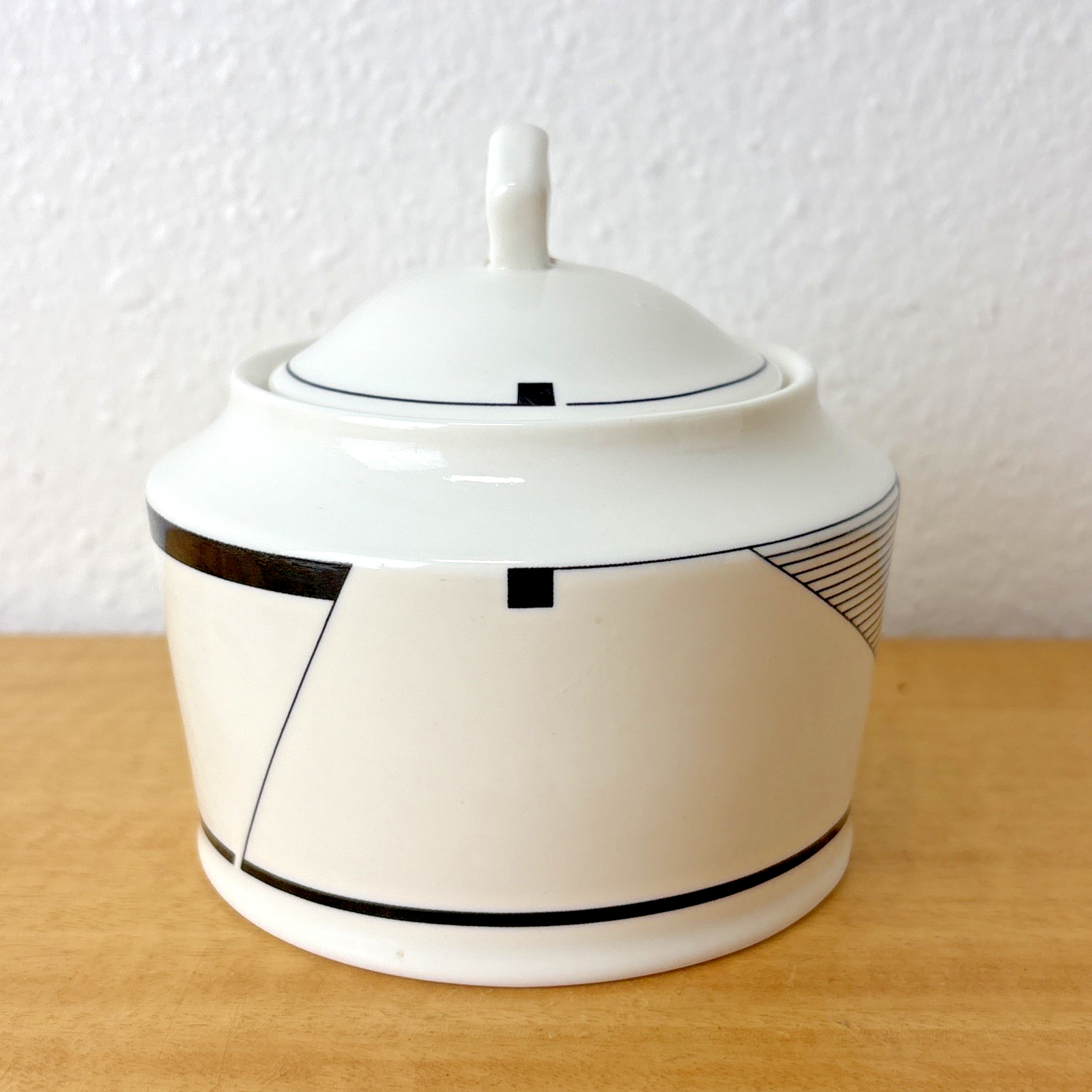 2-Pc Christopher Stuart Black White ANGLES Optima Super Strong Sugar Bowl & Lid
