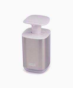 - Soap pump features large, easy-push head for optimum hygiene, fill-level window and non-slip base