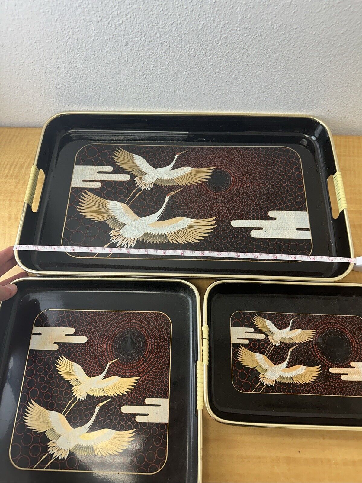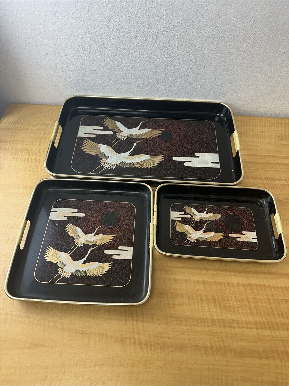 3pc Herring In Flight Circa Collection Decorative Lacquer Trays