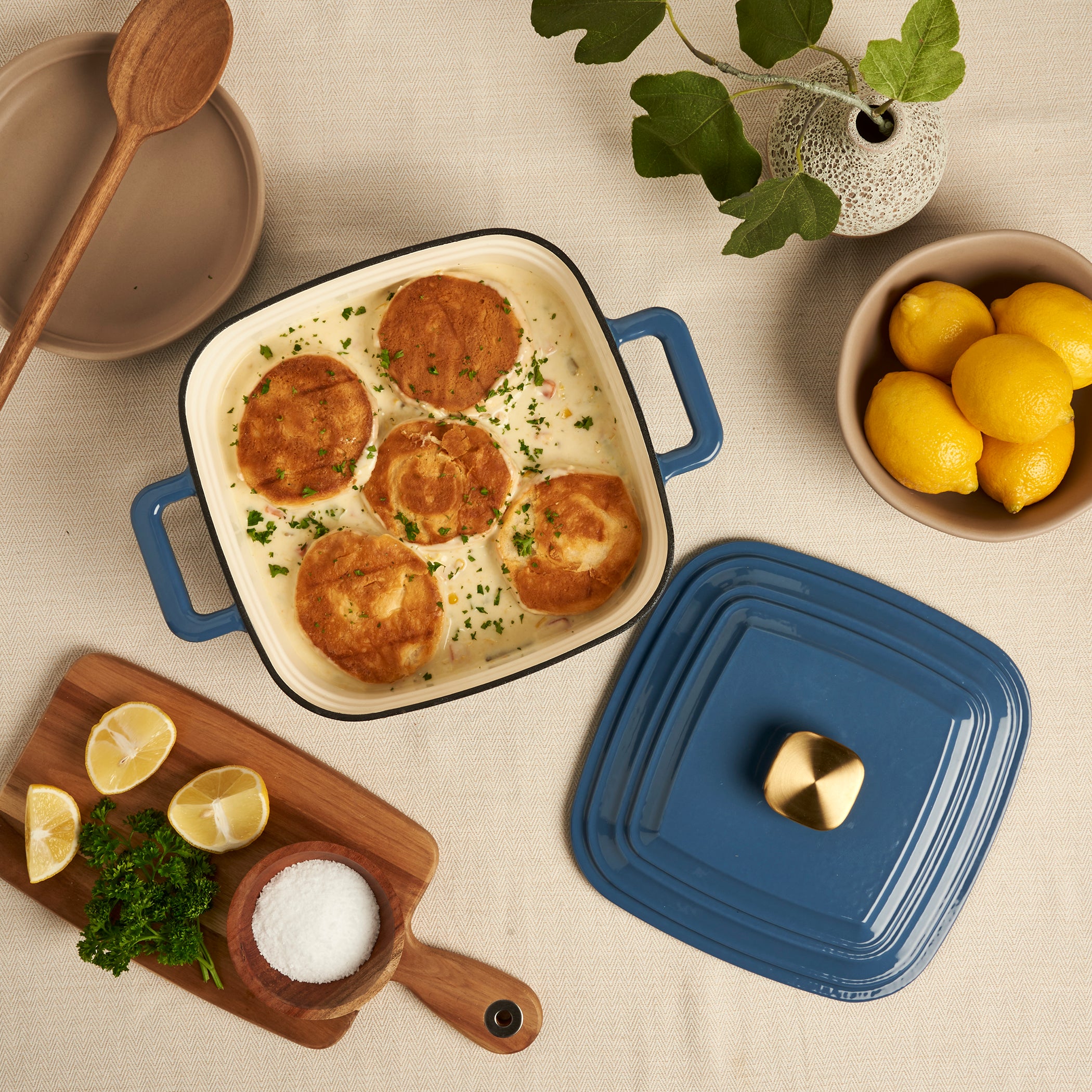 Pick your palette and find a color that fits your mood! Looking for a soothing touch of nature or a sleek, sophisticated matte color that stands out on the stovetop? A classic white color or a stunning new shade that turns your daily dinners into beautiful masterpieces? Smith & Clark’s unique colorway of square Dutch ovens is here to add to your kitchen vibe.